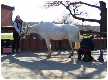Tag machen wollten. Der Tag wurde dann noch kürzer da Hässi mir beim Führen in der Halle durch Steigen einen Fingernagel angehoben hat. So sind wir vorzeitig wieder nach Hause.
