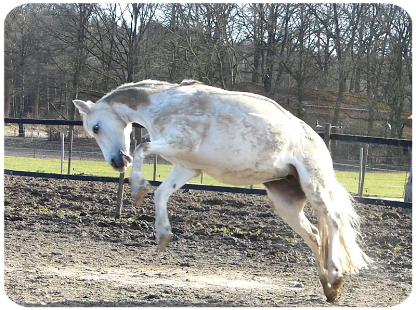 - 31.01.2018: Heute Nachmittag hab ich wieder Pupsi besucht und sie hat sich sehr gefreut und gegrummelt. Ich hab dann auch noch Hoppi rausgelassen, da gerade neue Heuballen auf die Paddocks gekommen sind und er so nicht gleich mit rausgelassen wurde. Mit Pupsi bin ich dann auf Ihre alte Sehnenrunde hinterm Hof. Aber nur die halbe Strecke und dann bin ich umgedreht. Sie war leider recht angespannt obwohl sie zunächst auch abgeschnaubt hatte. Ich bin auch erst geritten, dann aber abgestiegen. Beim Umdrehen nach der Weghälfte ist sie sogar einmal in die Luft gehüpft und hat auf dem Rückweg auch ganz schön gepullt (außer es gab grad ein Leckerlie). Ihre Schüssel hat sie auch ohne Hoppis Zusätze leider auch nur wieder mit wenig Begeisterung gefressen. Wir gucken mal, zumal meine Schwester für Ihre Zusätze ohnehin noch ein anderes Futter bestellt hat.
