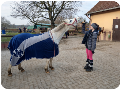 - 01.02.2018: Heute wieder mit Papi zu Hässi gefahren. Leider hatte ich ihr Futter in meinem Auto vergessen, so ist Papi nochmal los und ich bin in der Zeit unsere kleine Schrittrunde geritten. Diesmal war sie auch sehr brav. Nacher musste ich noch beim Rauslassen von Hoppi helfen, da er nicht aus seiner Box wollte und die Kinder, die da mitgeholfen haben ihn auch nicht rausbekommen hatten. Ich hab ihn dann aufgehalftert und rausgebracht. Er hatte sicher auf Hässi gewartet, aber die muss ja noch drin bleiben. Ihr Futter hat Hässi zwar gefressen aber auch wieder eher mäkelig, aber immerhin. Hoppi kam dann auch nochmal an Paddocktor und hat gegrummelt und eine Möhre bekommen und war nacher aber auch wieder am Heu.