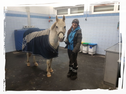 - 30.01.2018: Heute haben wir zunächst den Anhänger vom Hof und dann Hässi aus der Klinik abgeholt. Den Tierarzt konnten wir auch noch sprechen und haben auch einen Plan für die weitere Reha bekommen. Beim Vortraben in der Halle lief sie auch schon viel besser. Ihr Aufenthalt war dann auch etwas günstiger als gedacht *puh*.Als wir dann wieder am Stall waren und vorm Paddock abluden kam Hoppi auch gleich an und die Beiden haben sich begrüßt und gegrummelt und geblubbert *freu*. Hässi war ja nun auch 2 Wochen weg. Schwesters Freundi hatte uns netterweise gefahren und ist dann wieder nach Hause. Meine Schwester hat Hoppi vom Paddock geholt und wir haben die Beiden zunächst vorne vor der Halle angebunden. Bei Abnahme der Decke mussten wir leider feststellen, dass sie die Hautstelle an der Schweifrübe vom Hängerfahren nun blutig und ganz wund gescheuert hat. Meine Schwester hat das dann mit Octenisept desinfiziert, dass brennt nicht war aber auch nicht angenehm. Ich hab Pupsi vorne mit einer Möhre betreut, dass ging dann. Ich hab Hässi dann zu Beginn unserer Reitstunde noch 20 min Schritt geritten, meine Schwester hat die Stunde ganz ausfallen lassen, da wir knapp dran waren. Hässi war zunächst etwas angespannt aber brav. Ich hab sie dann noch geputzt und massiert, wieder eingedeckt und erstmal in die Box gebracht. Ich hab meine Schwester dann noch auf den Außenplatz begleitet, wo sie Hoppi longieren wollte. Danach bekamen Beide Ihre Futterschüsseln, wobei Hässi Ihre nicht so gerne mochte. Vielleicht weil sie noch etwas von Hoppis Futter bekommen hat, da dieser zuviel hatte oder weil sie jetzt 2 Wochen in der Klinik ein Müsli bekommen hatte, was Ihr besser schmeckte. Danach kam sie wieder in die Box und Hoppi alleine auf den Paddock. Hässi muss ja leider noch in der Box bleiben und darf die nächsten 10 Wochen nur Schritt gehen.
