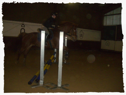 29.01.13: Abendstunde am Dienstag wieder mit Sattel. Momentan läuft Hässi nicht so ganz taktrein aber am lockeren Zügel dafür sehr entspannt. Vorallem der Galopp und Springen klappten super heute, ihre Taktprobleme bzw. tickern in der Hinterhand hat sie am ehesten im Trab.