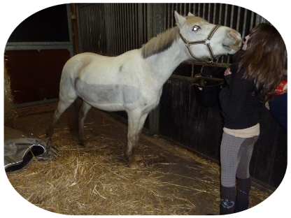 05.01.13: Da meine Schwester Sonntag etwas vorhatte waren wir Samstags nach 20 Uhr noch spät im Stall. Es war kaum was los und so ritten wir noch kurz ohne Sattel in der Halle. Freundin B. war auch mitgekommen. Wir sind dann auch wieder über die Stange gesprungen. Hat Hässi gut gemacht. Danach gabs noch Futter und wir fuhren 22:45 Uhr nach Hause und waren nicht mal die letzten am Stall ;-)