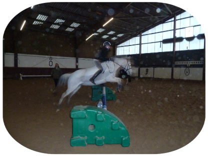 08.02.13: Diesmal Reistunde auf Hässi ohne Sattel. Hässi ist gut gelaufen und am Ende durften wir wieder Hopsen über die Cavalettihohe Stange.