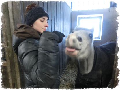 - 17.01.2016: Heute hatte meine Schwester mit Hoppi unseren kleinen Hoflehrgang bei Natalie Penquitt. Ich war Zuschauer und Hässi hatte heute Pause, da es glatt war und wir auch nicht kurz raus konnten. Sie konnte dann noch etwas ohne Decke in Ihrer Box fressen und liegen. Heute hab ich es auch mal geschafft mich neben sie zu setzen als sie lag *freu*, sie ist soooo süß und lieb.