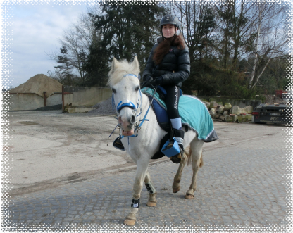 - 12.01.2016: Da ich keine Lust mehr auf mein Leihpferd S. haben fragte ich eine Miteinstellein ob ich einmal Ihr Pferd für den Unterricht leihen könnte. Sie sagte zu und wir teilten uns dann die Stunde. Sie ritt die ersten 30min und ich die zweiten. Ich ritt dann noch mit Pupsi eine Runde um den Block und übernahm dann Ihr Pferd. Er machte gut mit und die Stunde machte auch Spaß. Am Ende ließ er sich zwar gut hängen aber das war auch kein Problem. Meine Schwester und ich verlängerten dann noch um 15min und ritten dann trocken und versorgten die Pferde.