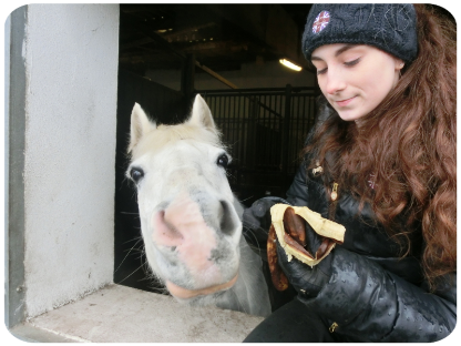 - 03.01.2016: Sonntag um 9 im Stall, zwar nur bei Minus 3 Grad aber durch den fiesen Wind auch gefühlte Minus 10. Normalerweise hätten wir uns auf einen Schneeausritt gefreut, aber wir blieben dann doch in der Halle. Wir machten dann auch noch Fotos für ein Schulprojekt waren allerding schnell durchgefroren.
