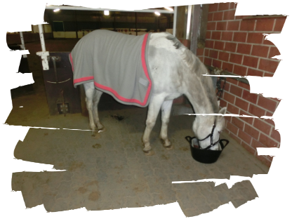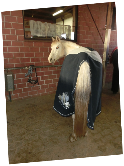 27.01.2014: Heute war Hässis neue Decke angekommen. Wir fuhren Abends daher kurz zum Stall, zogen die Abschwitzdecke drunter aus und die neue Decke an