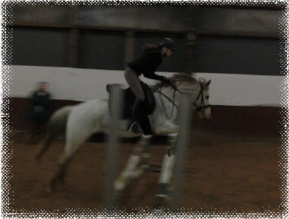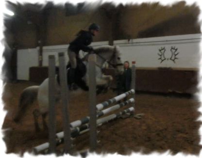 24.01.2014: Zuerst hatten wir Huftermin bei Jutta. Danach half meine Schwester mir mit Salvaro und Hässi, da ich wieder zwei Springstunden hintereinander ritt. Zuerst mit Häska in der Ponygruppe, danach mit Schulpferd Salvaro in der Pferdegruppe. Da Hässi heute nicht gut lief und dauernds stops machte so dass der Sattel rutschte, sattelte meine Schwester ab und ich sprang ohne weiter. Bei einem Hindernis am Ende waren Hässi und ich uns nicht einig und trennten uns leider. Ich versuchte mich noch in der Mähne festzuhalten, fiel aber blöd runter auf den Kopf und hatte einen tollen Brummschädel und Nackenverspannung. Bin dann trotzdem noch mit Salvaro gesprungen und auch mit Pupsi die Dressurstunde geritten Hier bin ich aber nur noch rumgedüdelt. Dank Wärmedecke zu Hause wars aber schnell besser.
