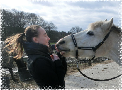 22.02.2014: Die Stunde lief heute nicht gut. Häskas Sattel rutsche komischerweise, evtl. nicht genug gegurtet und sie lief garnicht rund und hatte wieder schiss in der vorderen Ecke bei der Hallentür. meine RL hat mich dann in der Stunde, danach und nach der Theorie genervt ob ich denn wirklich Häska nehmen möchte für das Abzeichen, aber ich bin mir da sicher *muffel*
