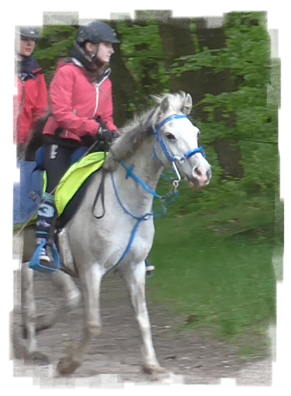 10. - 11.05.2014: war ich mit meiner Schwester und Ponyfreundin C. auf der 3. Windpferdedistanz. Wir hatten für Häska & Honeymoon einen 46km Zeitritt genannt. Am 10.05 ritten wir am späten Nachmittag zum etwa 8km entfernten Windpferdehof. Meine Schwester und Freundi fuhren mit unseren Sachen und dem Anhänger vor und stellten schonmal Zelt und Paddocks auf. Der Hinritt klappte super. Wir hatten auch Glück mit dem Wetter. Es war zwar frisch, aber der Regen blieb noch aus, es Nieselte nur etwas. Angekommen konnten wir auch noch zur Vorunteruschung. Alles ok, nun im Gang bekam Häska ein A-B da sie auf dem Hofpflaster nicht recht traben wollte und sehr passig lief. Wir übernachteten dann alleine am Hof und am nächsten Tag war die Distanz und meine Schwester kam gleich Morgens um 7 Uhr mit Freundi zum Helfen und Trossen. ICh ritt un meine erste Distanz mit S-Hack und das klappte auch super. Bis auf das wir uns gleich zu Beginn kurz verritten haben lief die Distanz gut. Hässi und Honey waren trotz des windigen Wetters und des oft matschigen Bodens gut drauf und auch flott. Wir machten zusammen den 6ten Platz mit nur 14 min Abstand zu Platz 1 und das auch noch in Hässis bisher schnellsten Zeit. Sie war so super. In der Nachuntersuchung gabs zwar auch wieder ein a-B im Gang aber sonst war alles Top. Ijre Pulswerte waren trotz des hohen Tempos und 2 Nierendecken auch supi und immer gleich unter 64. Wir ritten nach der Siegerehrung dann wieder zum Stall zurück. Dies dauerte diesmal etwas länger. Hässi durfte dann auf die Weide und hat sich sehr gefreut.