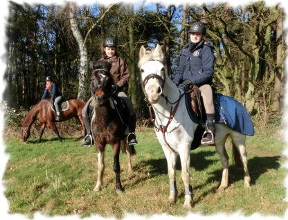 01.01.14: Neujahrsausritt mit meiner Schwester bei schönstem Wetter Richtung Groß Ippener. Ponyfreundin J. auf Laisar und Miteinstellerin M. auf Savoy waren mit dabei.Nach 18,66km und 3:12 Stunden waren wir wieder am Stall.