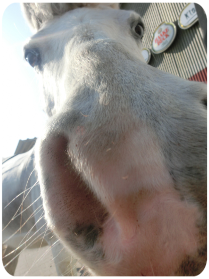 11.02.2014: Heute stand Häska mal vorne an der Heuraufe so dass ich nicht den langen weg über den Matschpaddock nehmen musste. Wir spülten dann den Pferden am Waschplatz noch die Matschhufe ab. Hat sie diesmal gut mitgemacht (mit Möhrchenunterstützung). In der Reistunde war sie heute wieder etwas flotter als sonst und kam auch besser in den Takt. Die Anlehnung war dafür nicht so gut wie sonst, aber eine gute Haltung hatte sie trotzdem. Der Dressursattel hat auch gehalten, aber es ist anstrengend darin gut zu sitzen. Am Ende hab ich noch den Sattel abgemacht und bin einige male ohne Sattel übers mittlere und hohe Cavaletti im Galopp. Diesmal hatte Hässi auch wieder mehr Elan beim Hopsen. Danach gabs noch Futti und Ihre Bananenchips mit Honig als Leckerchen.