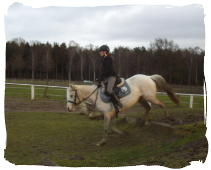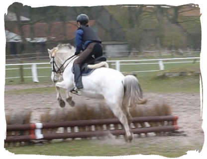 10.02.12: Springstunde auf Hässi. Diesmal musste wir viel auf dem Zirkeln springen, nicht leicht. Galoppwechsel standen auch auf dem Plan. Irgendwie hing ich mit der Bewegung heut etwas hinterher aber dafür ist Hässi auch ein Doppelkreuz gut gesprungen. Abends dann noch Unterricht mit Hässi ohne Sattel. War auch ganz gut. Durfte am Ende wieder ohne Trense also ohne alles durch die Halle galoppieren.