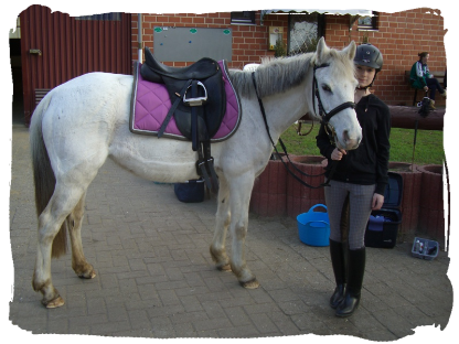 10.03.2012: Lehrgang Lederkunde gehabt. Freundin B. hatte bei mir übernachtet und war mit und durfte auch mitmachen. Haben die Sättel und Trensen der Schulpferde gereinigt und gefettet. Später haben wir dann noch Verladen geübt. Ich hatte Schulpony-Omi Anuschka. Die war ganz brav. Nach den Lehrgang sind wir mit Schwester und Freundi nochmal zum neuen Krämer Megastore. Hab noch eine Leckerlietsche, Socken und einen Lammfell-Putzhandschuh gekauft.