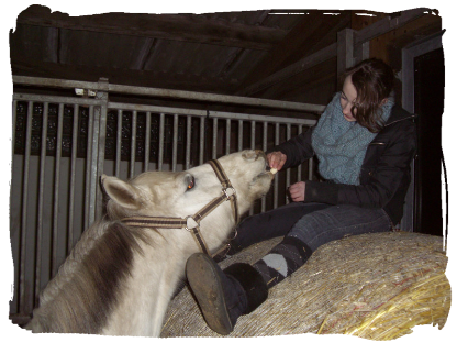 07.04.2012: Osterfeuer am Reitverein. Vorher noch kurz Hässi gefüttert.
