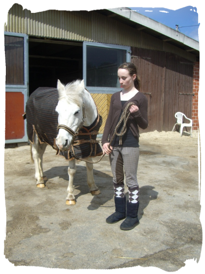 19.02.2012: Zuerst Fotoshoting mit meiner Schwester gemacht für den Krämer Fotowettbewerb. Bei uns eröffnet am 08.03 ein neuer Mega-Store. Hab mich verkleidet und aus Hässi wurde ein Einhorn. Danach noch kleine Geländerunde mit meiner Schwester und Freundin C. ohne Sattel. Hab auch erst überlegt die Distanz Ende März vielleicht doch wieder ohne Sattel zu reiten, aber das ist doch zu anstrengend. Hab das nicht mehr so geübt. Danach wieder Theorie Basispass und nacher noch Reiterpass Unterricht. Diesmal haben wir in der Halle viel am leichten Sitz geübt. Am Ende sind wir auch nochmal auf den Außenplatz zu den Baumstämmen. Hässi ist gleich beim ersten Mal im Galopp über den Baumstamm, den sie sonst garnicht mag *freu*. Danach noch Reiterpass-Theorie und meine Eltern haben mich abgeholt.