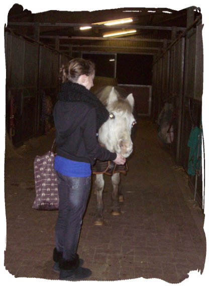 11.01.2012: Mit meiner Schwester und Freund und Betty nochmal zum Hof. Haben den Pferden die Beine mit einer Lotion gewaschen und dann schön eingesalbt. Momentan ist es schlimm matschig, da ist die Haut in den Fesselbeugen auch mal gereizt. Warm waren die Fesselbeugen aber nicht mehr. Salben nun regelmäßig die Fesselbbeugen ein.