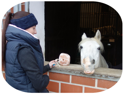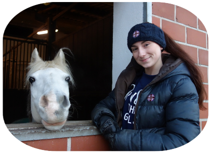 - 04.12.2016: Heute wollten wir schön ausreiten und die Schuhe nochmal richtig testen. Leider waren die Straßen jedoch glatt, so blieb nur die Halle. Wir waren dann leider auch nicht allein und eine Longenstunde gab es auch noch *blöd*. Ich war zeitig vor allen anderen fertig und so konnte ich Hässi noch frei laufen lassen. Ich longierte sozusagen ohne Longe und sie machte richtig gut mit. Übergänge klappten gut auf Beiden Händen, wobei sie teilweise auch etwas wild wurde und sogar mal buckelte oder eine 180Grad-Drehung machte. Sie lief im Trab und Galopp auch schön in Selbsthaltung aber meist etwas über Tempo und daher auch teils harkelig. Danach hab ich dann getrenst und bin mit Pad weitergeritten. Hier war sie leider wieder sehr fest. Da wir später wegen der Longenstunde zu dritt auf dem hinten Zirkel festhingen kam ich auch nicht mehr recht in Gang. Ich bin zwar noch einige Male über doppelte-Schaumstoffstangen die ich zuvor hingelegt hatte, hab dann aber früher aufgehört. Nach der Stunde gabs erst eine Po-Massage und dann noch Futti und die Beiden kamen in Ihre Box. Heute hat uns dann ausnahmsweise mal unser Papi abgeholt *freu* und durfte noch zu Hässi in die Box und Leckerlies geben.
