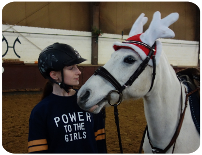- 23.12.2016: Da keine Springstunden waren konnten wir vor den Abendstunden in die Halle. Heute ritt ich wieder mit Trense. Hoppi lief heute besser als am Dienstag und Steckte sich auch wieder mehr nach unten an das Gebiss.