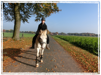 - 13.10.2015: Zuerst ritt ich mit Hässi für eine kleine Runde vom Hof, mit Trense und ohne Sattel. Die Hälfte der Strecke bin ich geritten die andere hälfte hab ich geführt. Klappte super und sie war sehr flott und motiviert, ließ sich aber auch leicht an den Zügel reiten. Hässi ist einfach die Beste. So gut es mit Hässi lief so durchwachsen war heute die Reistunde auf meinem leihpferd S. Sie war heute ähnlich wie Hoppi sehr zicken auf die anderen Pferde und einfach total unlocker. Ganz zum Ende gings dann aber war schon anstrengend.