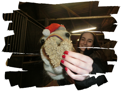 - 08.12.2015: Heute bin ich erst mit Hässi und Reflektorsachen 30min um den Hof und danach hatte ich Stunde mit Leipferd S. und Hässi durfte wieder in ihre Box Heu fressen. Die Reistunden mit S. sind leider nur solala, sie ist lieb im Umgang aber nicht toll zu reiten. Am Ende haben meine Schwester und ich mal kurz getauscht und Sie fand S. auch furchtbar. Danach ging ich noch mit Hässi zum Führen in die Halle und es gab noch Futti.