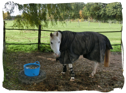 - 13.12.2015: Hoppi & Häska hatte Ihren erste gemeinsame Nacht auf dem Paddock ohne Vorfälle verbracht und waren bereits reingeholt worden als wir um 9 Uhr am Hof waren. Wir wollten heute eigentlich etwas länger ausreiten, aber da wir den Krankenpaddock noch abschließend säubern wollten wurde es nur ein normaler Ausritt. Während wir abäppelten grasten Hoppi & Hässi zusammen auf dem Springplatz. Danach putzten wir die Beiden wieder ausgiebig und ritten dann unsere 70min-Runde durch den Ort. Ich ritt mit Hässi vorweg mal wieder im Distanzsattel und mit S-Hack. Sie war brav und gut unterwegs. Sie trägt nun immer noch Ihren Kompressionsstrums unter den Wollwickeln gegen die Restschwellung die noch an der Stelle des Sehenschadens am Bein ist und bei Bewegung ein bissel größer wird. Wieder zurück am Stall gabs noch Futti und die Beiden kamen wieder in Ihre Boxen. Häska nimmt Ihre Box auch gut an und ist garnicht unruhig und frisst auch schön am Heunetzt.