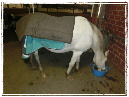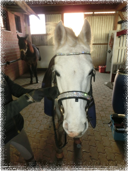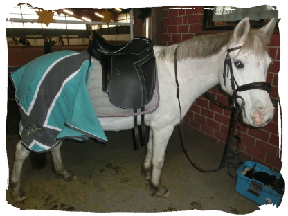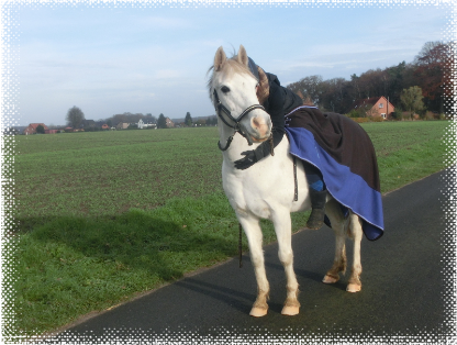 - 24.10.2014: Erst Springstunde mit Schulpferd Salvaro (Springgymnastic 1 von 3). Er hatte heute beim Putzen schon etwas Rückenweh aber lief sich gut ein und wurde lockerer. Wir hatten 3 Cavaletti in Reihe und ein einzelnes und ein Doppelkreuz. Hat alles gut geklappt. Danach machte ich wieder Pupsi fertig für die Abendstunde. Sie lief gut heute und kommt nun auch im Galopp schon gut an die Hand. Am Ende hab ich nochmal mit meiner Schwester getauscht. Sie durfte auf Hässi und ich auf Hoppi. Hoppi ist wieder gut in Form und lief auch passabel. Ich finde Hoppi ist sehr fein und leicht zu reiten. Meine Schwester kam auf Hässi nicht zurecht, Hässi ist Ihr zu schwierig :) einen kleinen Galopp hat sie aber auch geschafft, nur traben klappte nicht, da wurde immer Pass draus. Hässi bekam dann heute Ihre neue Outdoordecke drauf. Die alte war leider nicht mehr ganz dicht. Nun hat sie ein neues Modell mit high neck was auch viel besser sitzt. Die Seiten sind bei ihr immer etwas lang, aber so ist sie gut geschützt.