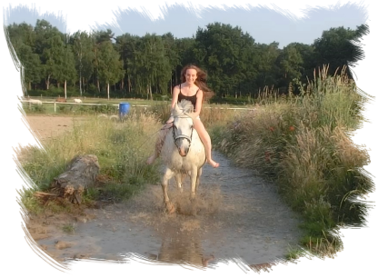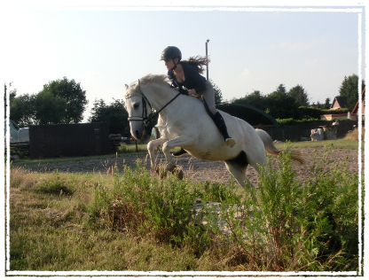 - 16.06.2015: Dienstagsstunde mit Pupsi. Heute ritten wir auf dem Außenplatz. Hässi lief heute wieder besser und hob im tiefen Sand auch gut Ihre Beine. Wir sind auch im Galopp durch den Flattervorhang am Platz und im Schritt und Trab über die Holzbrücke. Ohne Sattel bin ich auch noch übers Cavaletti gehüpft und durchs Wasserloch galoppiert.