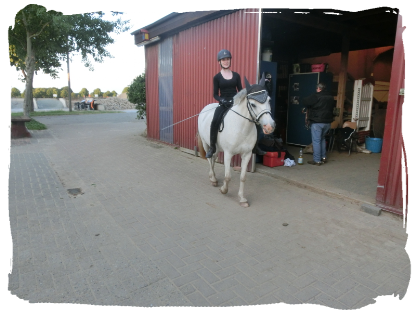 - 11.10.2015: Heute sollte Hässi zu ersten mal wieder Ihren Sattel tragen und dann auch noch mich. Hässi war seeeehr motoviert beim satteln und wollte schon gleich in die Halle. Als sie dann merkte das es rausgeht war sie noch motivierter. Im flotten Schritt ging es am Sidepukll geführt vom Hof, meine Schwester ritt mit Hoppi hinter uns her. Hässi war die ganze Zeit flott unterwegs und lief sehr gut. Die letzten 10 min bin ich dann geritten. Auch hier lief sie ohne Probleme flott voran. Danach gabs nöch Möhrchen und Heu und Futti.