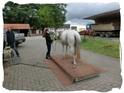 - 20.06.2015: Pferdewaage am Hof. Hoppi und Hässi haben leider beide zugenommen, etwa 16kg im Vergleich zum Vorjahr (insgesamt 364 kg), aber nun hat sie schon BCS 6,0, sie wird dick. Ihr Idealgewicht ist unetr 330 kg, dann ist der BCS bei 5,3.