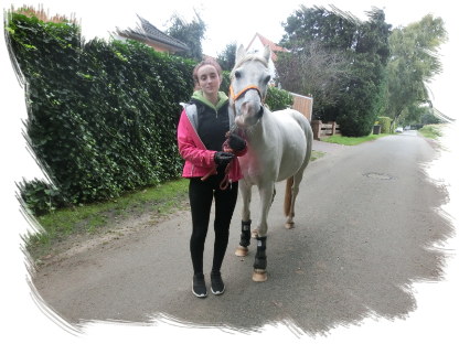- 21.07.2015: Unterricht mit Hässi. Heute hat sie sich ein bischen festgemacht und lag teils auf dem Gebiss. Unsere RL S. hat vesucht mir Tipps zu geben, insb. zu meiner Handhaltung und zum langen Bein. Am Ende haben wir noch eine Dressuraufgabe geritten. Bis auf einen kleinen Hüh-Anfall von Hässi wg. so einem Lichtfleck an der Wand wo sie mit hohem Kopf einfach rumgedpüst ist war die Aufgabe sehr gut geritten. Bin gespannt auf unser nächstes Turnier am 26.09. Ich durfte netterweise noch eines nennen und meine Schwester + Freundi fahren uns dann hin *freu*.