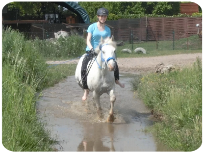 - Durchs Wasserloch am Hof reiten (Die Aufgabe mussten alle aus der Gruppe machen)