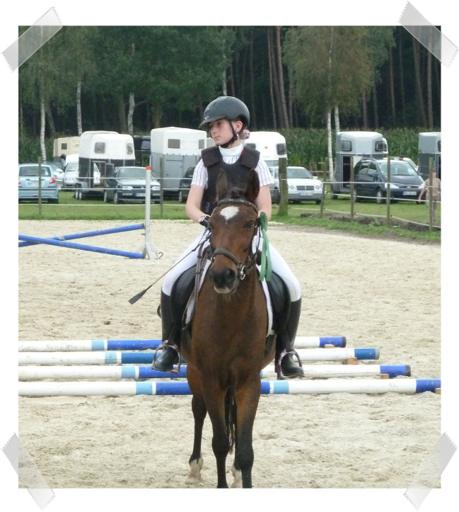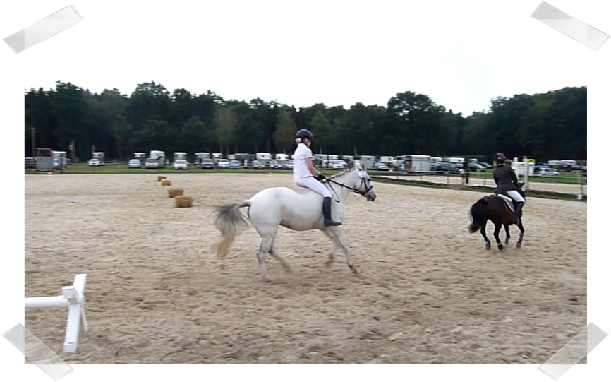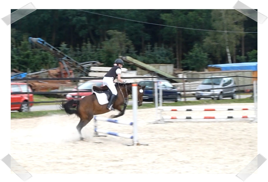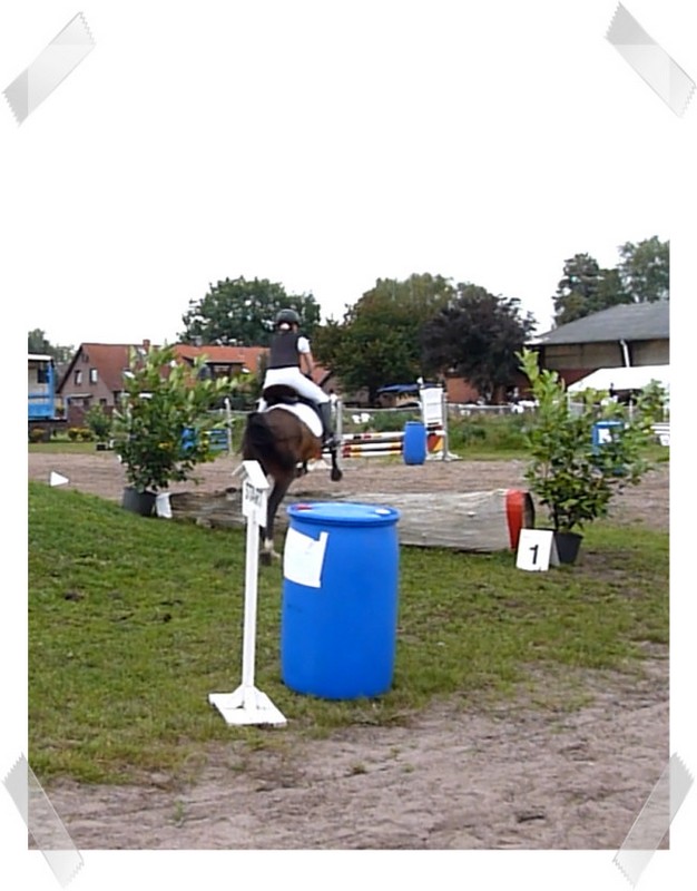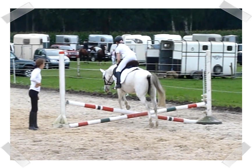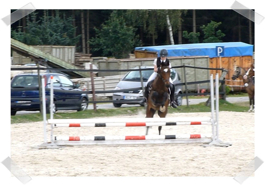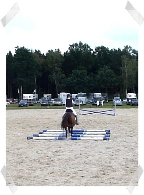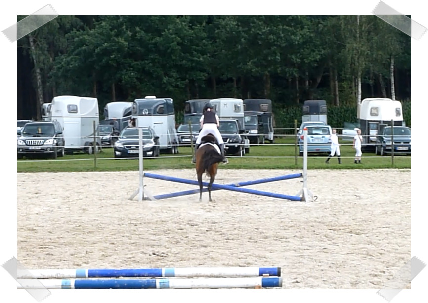 Da sie zu der Zeit noch nicht so zuverlässig sprang habe ich auch 2 Prüfungen mit Schulpony Lauser gemacht, mit dem ich schon beim großen Hufeisen gesprungen bin.