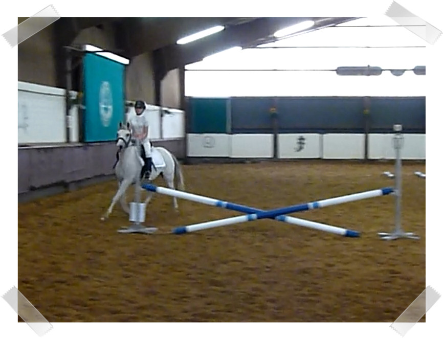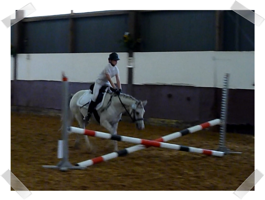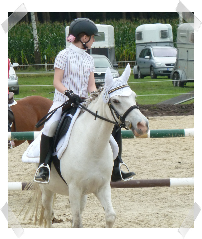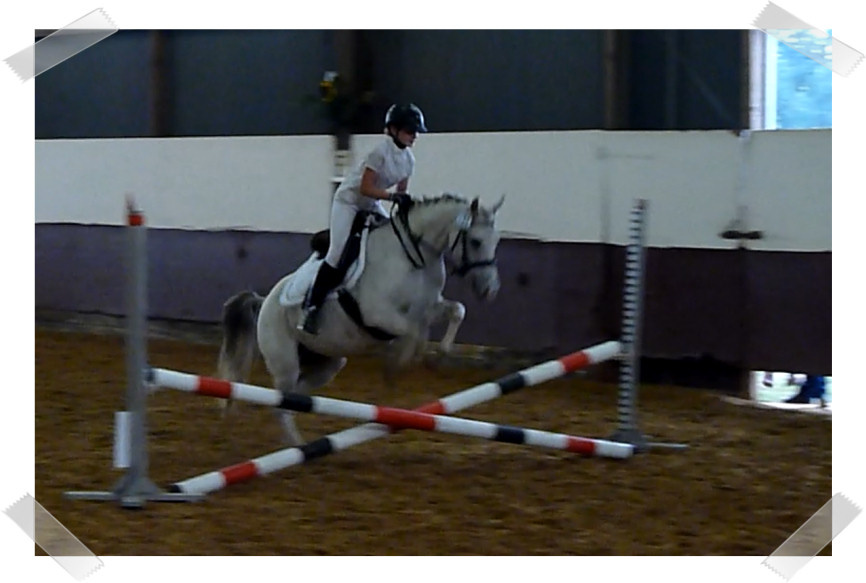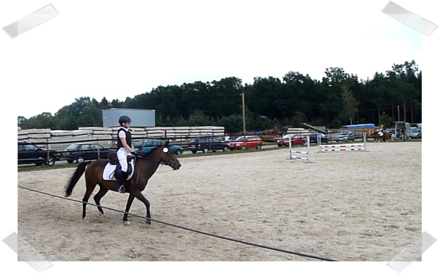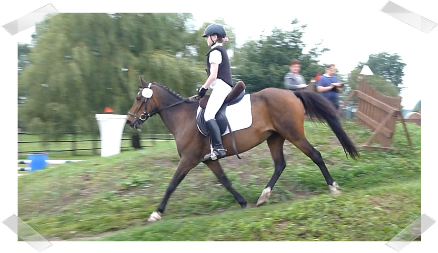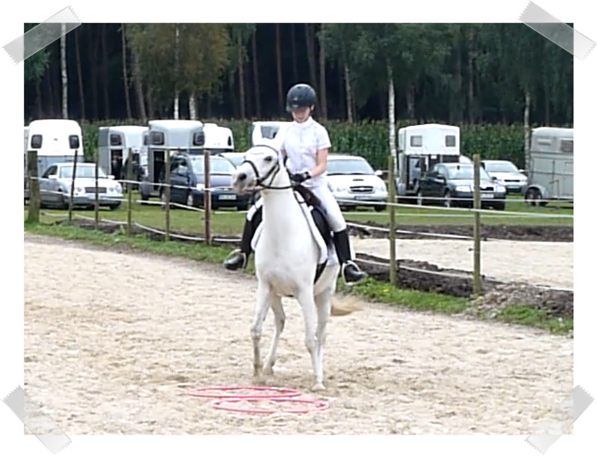 Da sie zu der Zeit noch nicht so zuverlässig sprang habe ich auch 2 Prüfungen mit Schulpony Lauser gemacht, mit dem ich schon beim großen Hufeisen gesprungen bin.