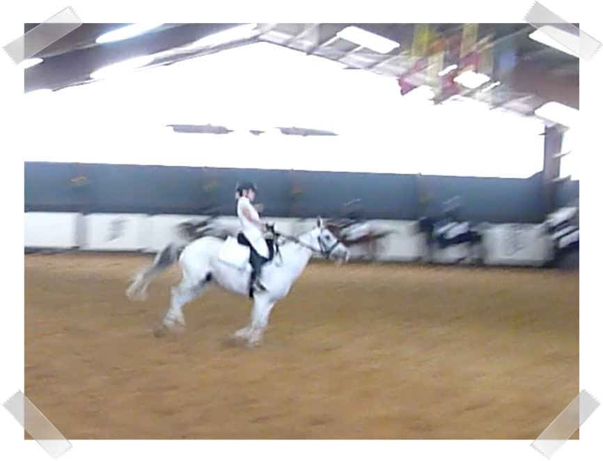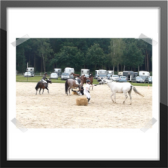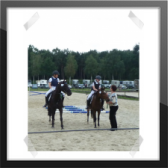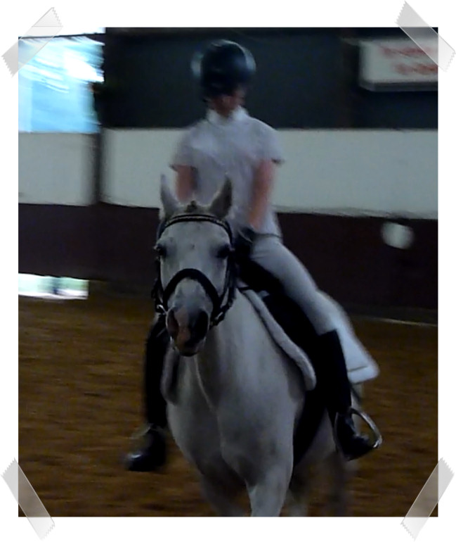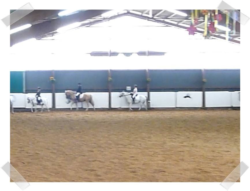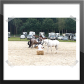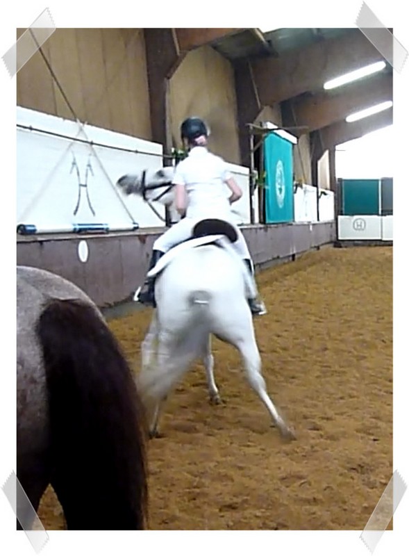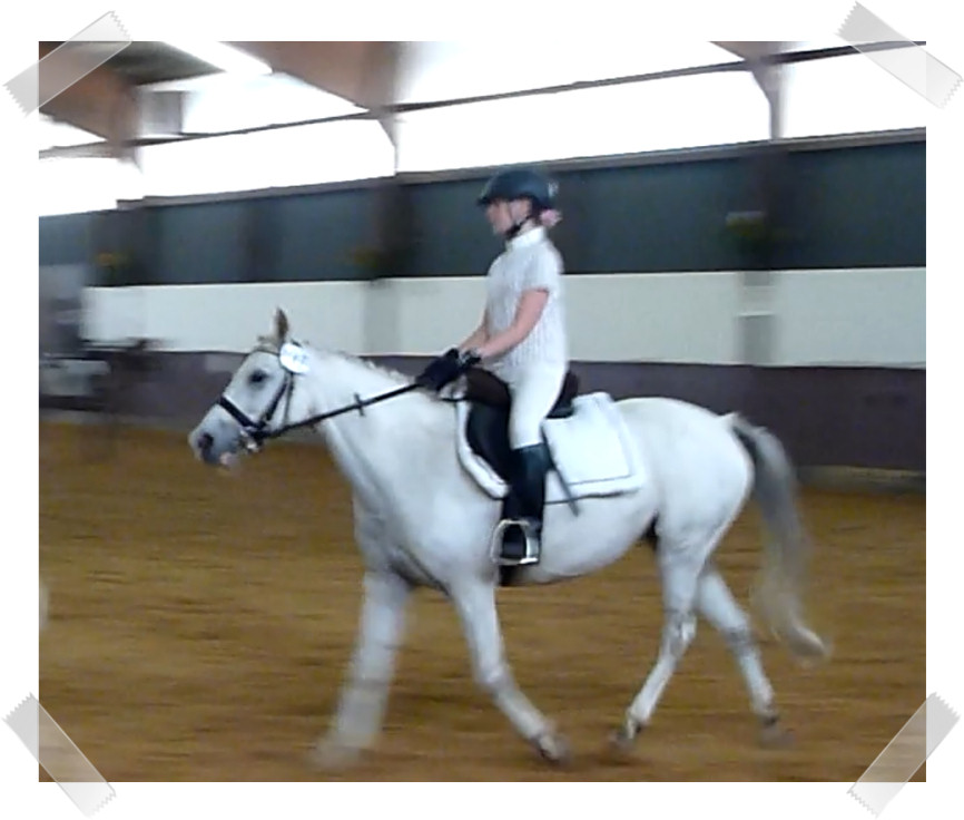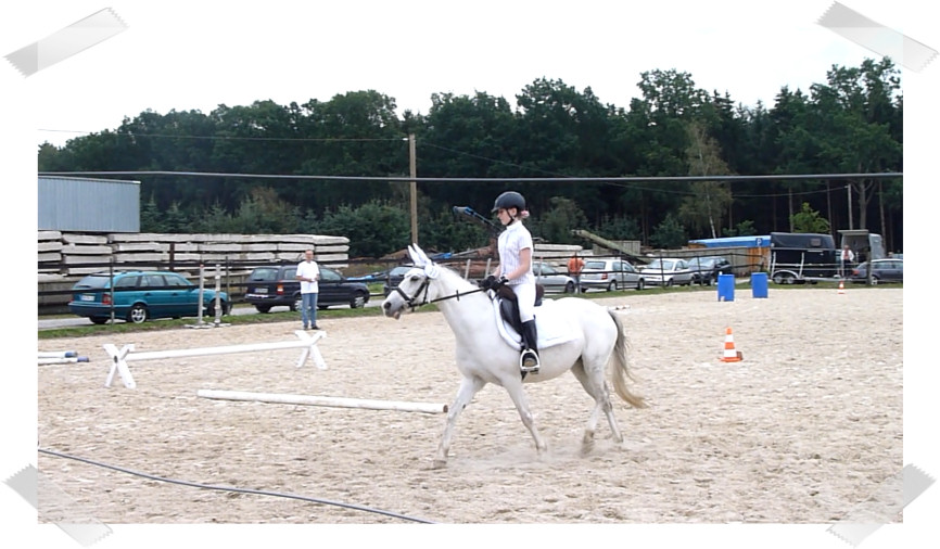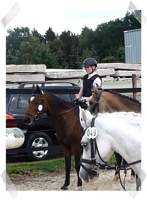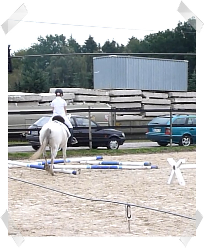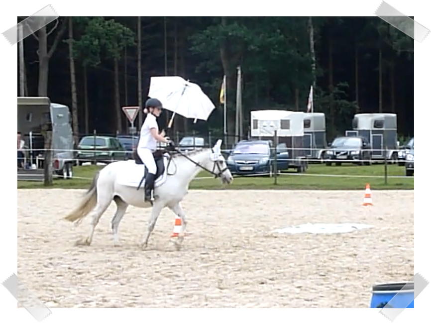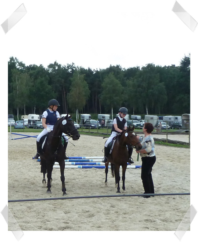 Wir ritten an letzter Stelle einer 10er Abteilung. Vorne war leider ein kleines total langsames Pony so dass sich die Abteilung immer wieder staute. Häska war kaum an ihrem Platz zu halten und sehr aufgeregt. Sie lief auch die ganze Zeit im Pass. Am Ende dann 8te von 8 mit Note 6,5, da es ja auch nur auf meinen Sitz ankam. Die Richterin meinte ich säße gut, aber sie konnte den Trab nicht bewerten da Häska ja keinen zeigte, blöd.
