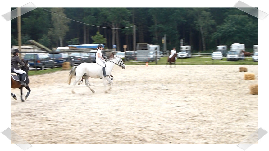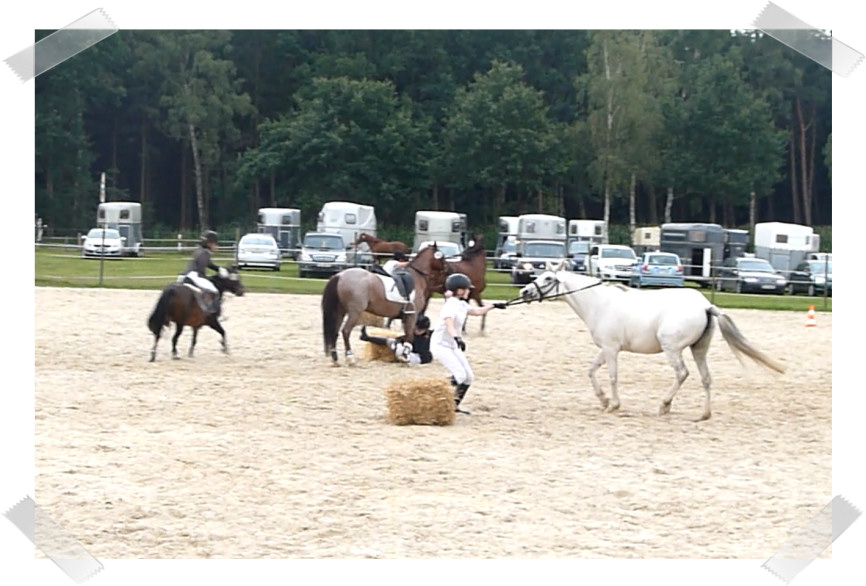Macht eigentlich immer viel Spaß aber auch heute war Hässi zu düsig und hat mich so im Galopp vom Strohballen gezogen nachdem ich schon abgesprungen war. 3ter Platz von 4.