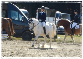 Wir waren dann rechtzeitig fertig. Der Platz war sehr voll aber auch recht groß und gut bereitbar. Von dort aus ging es dann zur Halle. Vor der Halle gabs noch einen Vorraum in dem wir noch Schritt geritten sind bis wir dran waren. Nach der Starterliste sollten alle Ponys hinten starten und aber in meiner Zweiergruppe war ich vorne und hinter mit ein kleineres Pferd. Das gab zuerst Diskussionen aber ich durfte vorne bleiben. leider machte Hässi mir einen Strich durch die Rechnung, da sie in der Halle zuviel Schiss hatte und einfach nicht geradeaus lief. Ich musste die andere Reiterin dann doch vorlassen. Nach dem Sart lief es dann eigentlich ganz gut, nur ab und an hat Hässi statt Trab etwas andere gelaufen (Zuschauer meinten es war Tölt). Der Galopp war richtig gut und Ihre Haltung auch. Außer bei dem Schrittteil, da sie sich da ständig am Bein kratzen wollte. Ich war zufrieden mit der Prüfung und meine Schwester auch, leider wurde wir jedoch nicht gewertet. Warum genau weiß ich nicht, da es nicht angesagt wurde, evtl. wegen der Gangfehler oder weil ich die Position verlassen hatte? In der Übersicht stand nach ich hätte aufgegeben. Obwohl wir wieder nicht platziert wurden war ich mit Ihrer Leistung diesmal sehr zufrieden und sie ging auch zurück sogar ohne zögern super auf den Anhänger. Zurück am Stall ging sie auch super runter und in die Box und bekam noch ihr Futter.