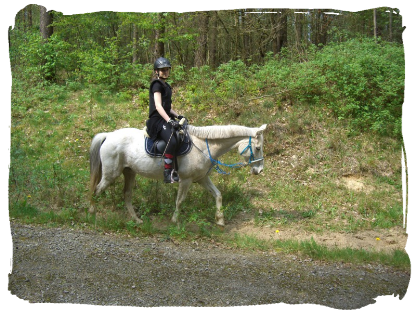 19.08.12: Wegen der ernormen Hitze (es waren 35 Grad angesagt) wollten wir nur Morgens eine kleine Runde drehen. Wir ritten ohne Sattel im Schritt 1,5 Stunden durch den Wald (ca. 7,6 km) bei 26 Grad und Schwesters Freundi lief nebenher.