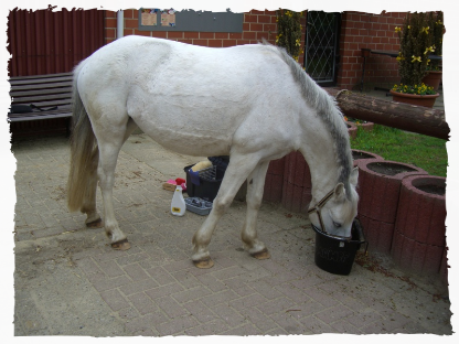 24.04.2012: Am Dienstag wollte ich nun eine Stunde auf Hoppi machen und meine Schwester auf Hässi. Daraus wurde dann leider nichts. Hässi kam schwer schaufend und atment von dem Paddock und mochte auch Ihr fressen nicht, sehr verdächtig. Als es sich nicht besserte rief meine Schwester nach 45 min beim TA an, diagnose: Schwere Pupsungen, man musste aber nichts machen. Haben sie dann noch spazieren geführt und nach gefühlten 50 üblen Pupsern und sogar einigen Rülpsern war sie auf einmal wieder scharf auf Ihr Fresschen. Das gabs dann aber nur sehr redurziert und sie durfte wieder auf den Paddock. Bei der derzeit begrenzten Weidezeit wenigen Stunden hatte Madame es wohl zu eilig. Wir beobachten das, aber nun können wir auch besser einschätzen wann es vielleicht wirklich schlimm ist. Hoppi war auch sehr gemütlich und dösig, aber Hässi ist eben ein Nimmersatt ;-)