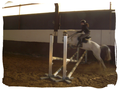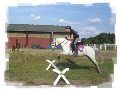 07.08.12: Ich ritt Hässi wieder mit länger eingestellten Lauferzügeln. Am Anfang lief sie etwas verhalten aber dann wurde es besser. Am Ende der Stunde ritten wir noch draußen und ich bin mit Hässi übers Hohe Cavaletti gesprungen.
