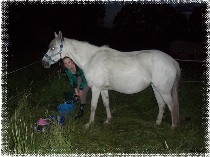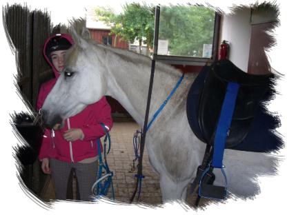 22.06.2012: Zunächst hat meine Schwester mir geholfen Hässi für die Springstunde fertig zu machen und hat mich geknipst, danach ist Sie dann noch Hoppi im Abend Reitunterricht geritten.