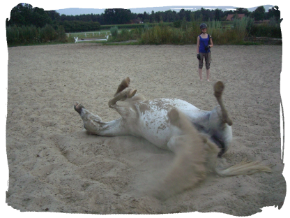 05.08.12: Traningsrunde Wawer Sand 20,56km in 2:23 Stunden. Ich blieb dann noch und half mit anderen Ponykindern beim "Kindernachmittag mit Ponyführen" auf dem Hof. Wir führten die Besucher auf den Schulponys und aßen auch lecker Kuchen und durften danach noch die Schulpony reiten. Geführt hab ich Sir Henry der ziemlich nervig war wenn er Gras fressen wollte und geritten bin ich die kleine Windy. Wir ritten alle ohne Sattel. Windy war ganz schön düsig und frech aber die Buckler hab ich auch überstanden und schaffte es auch durchs Wasserloch. Pony Susi verlor leider ein Eisen und wir suchten nacher alle Barfuss im Wasserloch und fandesn leider nicht, einige Tage später tauchte es aber wieder auf.