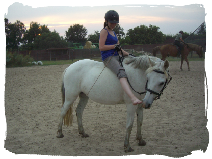 14.08.12: Abendstunde mit Hässi. Wir ritten diesmal auf dem Außen-Dressurplatz. Es war warm und wir waren nicht so motiviert und so lief es solala. Am Ende durfte ich noch Hopsen und ritt ohne Sattel öfter übers hohe Cavaletti und auch über 2 hohe Cavalettis hintereinander, einen Doppeletti sozusagen ;-)