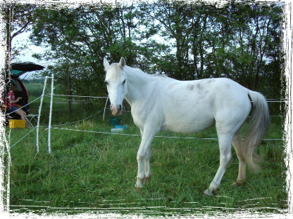 31.07.12: Hässi diesmal mit etwas längeren Lauferzügeln geritten. Klappte ganz gut. Zudem haben wir heute neue Gurtschoner gekauft, da es bei Hässi momentan immer an den Hautfalten an der Gurtlage scheuert. Heute ging es. Da Hässi momentan etwas gut im Futter ist bekommt sie nun rationierte Heuhächsel und KF. Hoppi darf nach wie vor fressen wie er mag, der hats gut.
