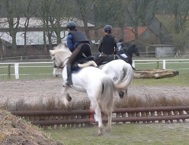 Meine RL bot mir dann an eines der anderen 3 Schulponys zu nehmen, die mit anderen Kindern auch das kleine Reitabzeichen sprangen. Mit denen hatte ich aber nie geübt bzw. bin ich die Ponys nie im Springen geritten.