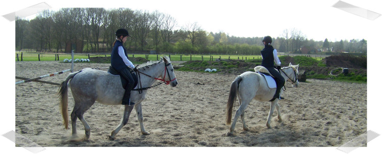 Prüfungstag. Ich hatte kein gutes Gefühl. Um 8 Uhr begann der Basispass. Irgentwie waren die Fragen doof und beim Vorführen zischte das sonst faule Pony Lotte rum, aber alle haben es geschafft. Meine Schwester hat zwischenzeitlich Hässi für den Reiterpass fertig gemacht. Wir ritten zunächst nach kurzen warmreiten- und springen in der Abteilung. Das klappte gut. Dann kamen die Einzeldurchgänge. Meine RL hat überall die Sprünge angesagt, da ich als letztere dran war dachte sie ich wüsste wohl alles. So ließ ich einen Sprung aus und ritt die Runde nochmal an. Hier verweigerte Hässi, aber ich kam mit einer großen Vollte ausm Trab dann doch über den Stamm. Dann ging es übern Wall in die Zweite Runde. Hier hatte ich ja nur Angst vor dem Doppel-Baumstamm. Davor liegt noch ein kleiner den Hässi immer gut sprang, aber heute hat sie den auch einmal verweigert. Auch hier kam ich mit einer großen Vollte ausm Trab rüber und obwohl die Distanz zum Doppelten nun klein war schaffte Sie auch das und ich war durch. Danach noch eine kleine Runde um den Hof getrabt und das reiten war geschafft. Theorie war für späten Nachmittag angesetzt. Aus Zeitgründen erfolgte die Theorie dann spontan gleich im Anschluss und ich wollte ja nochmal was lrnen *muffel*. Die Theorie war richtig doof und ich dachte ich wäre durchgefallen, aber alle haben letztendlich bestanden *freu*