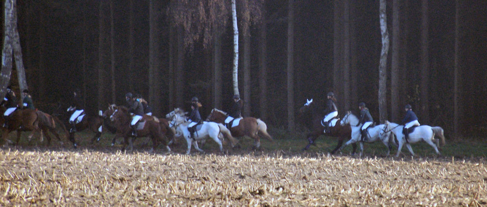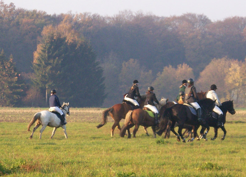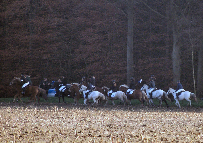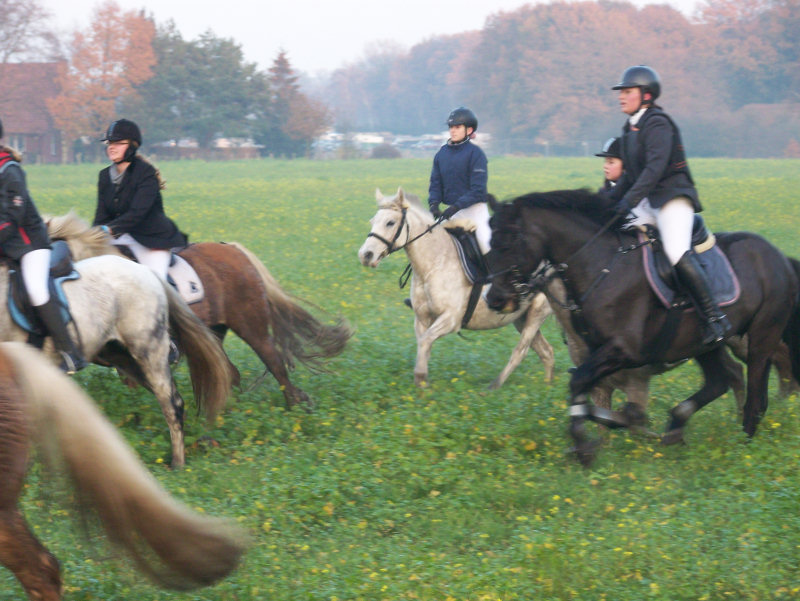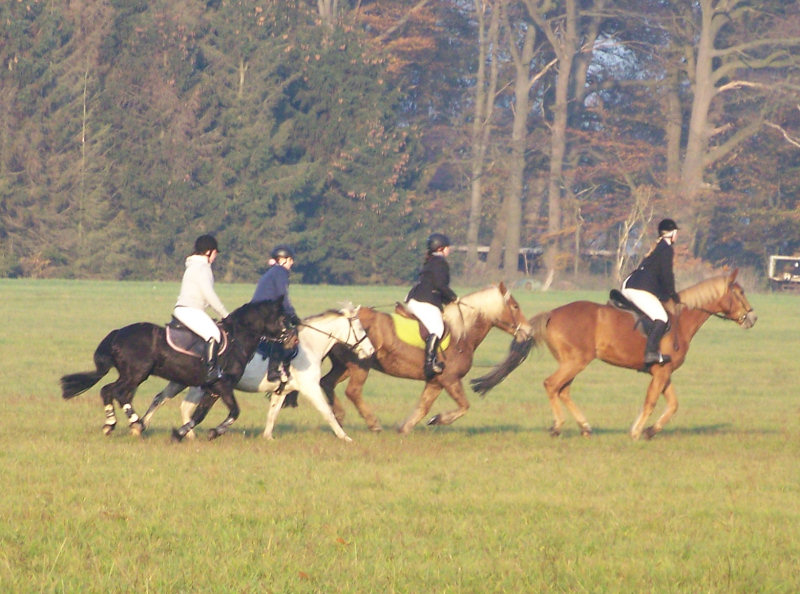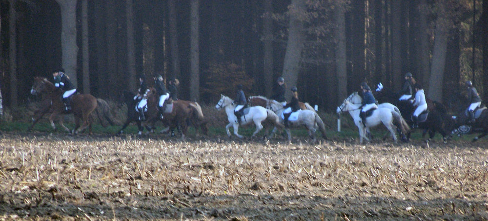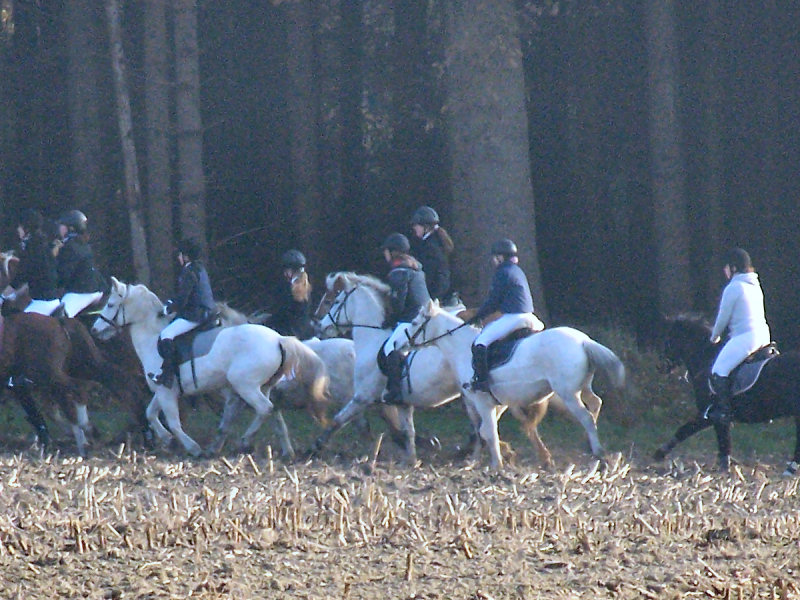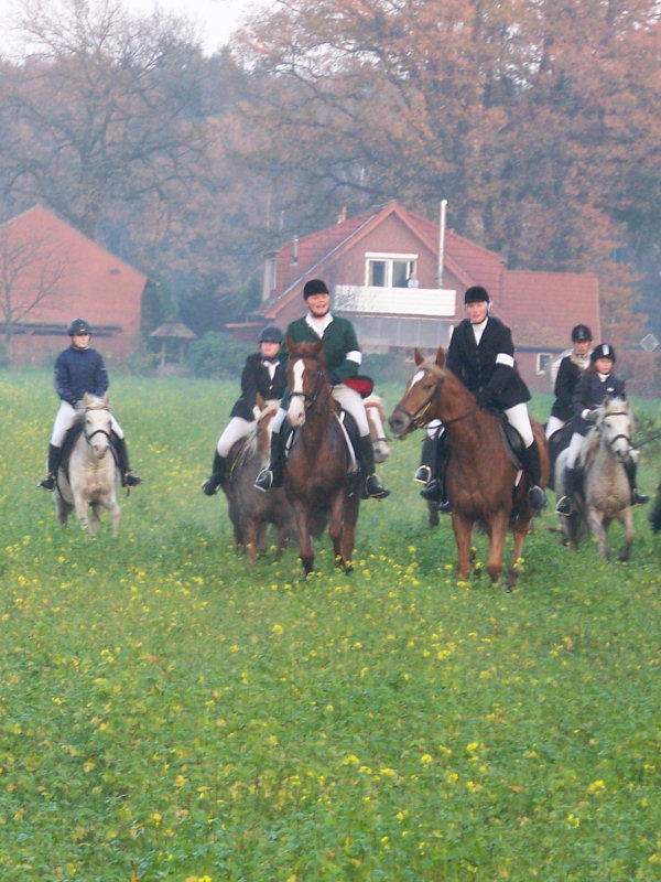 Unsere erste Fuchsschwanzjagd. Ich ritt im letzten Feld bei den Nichtspringern. Hat viel Spaß gemacht.