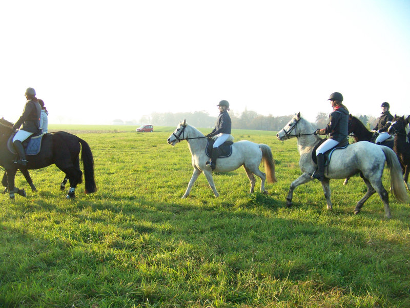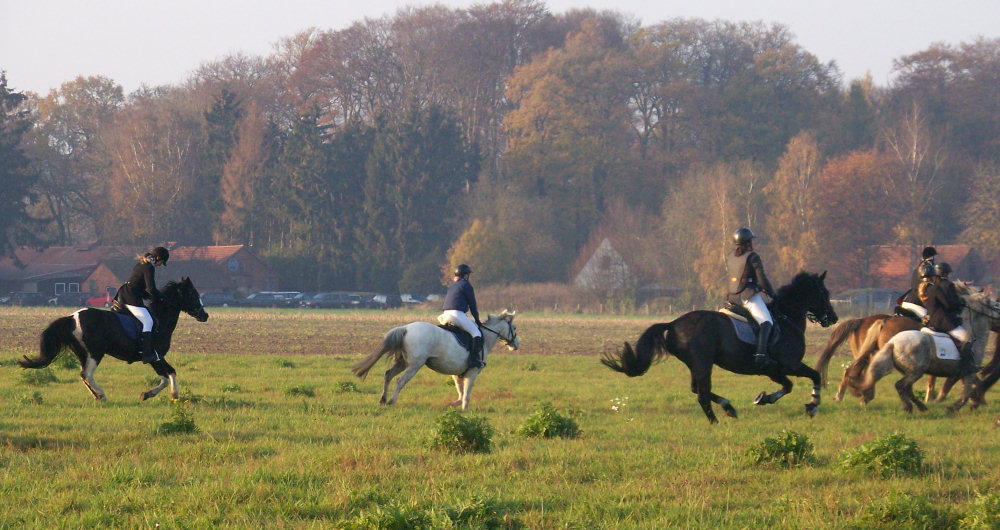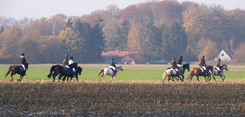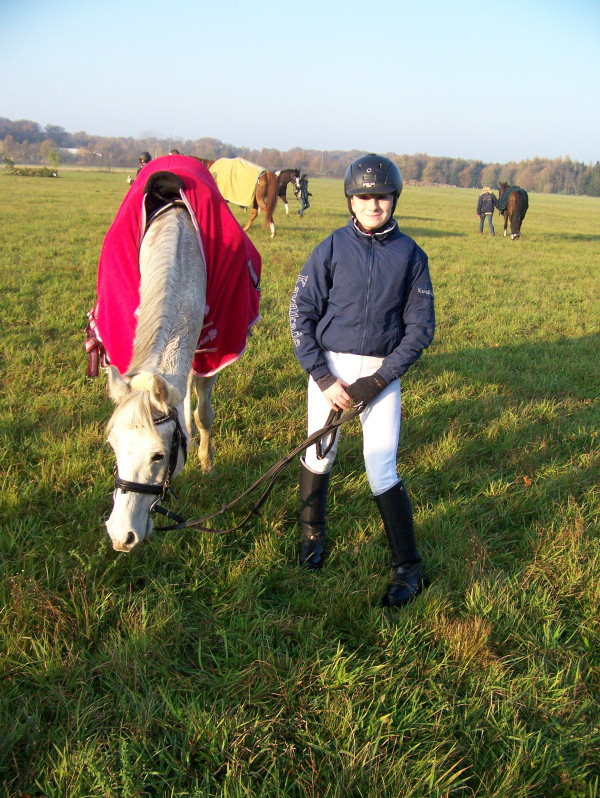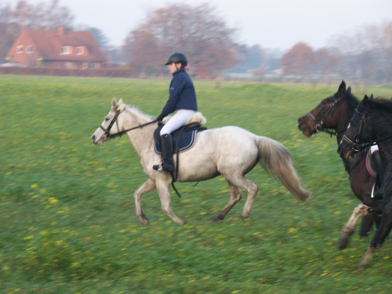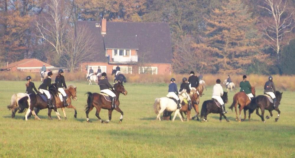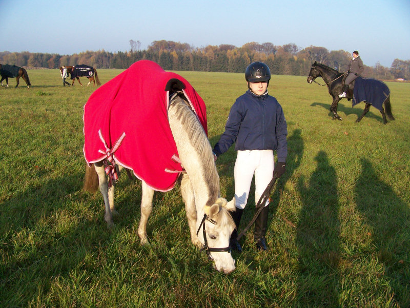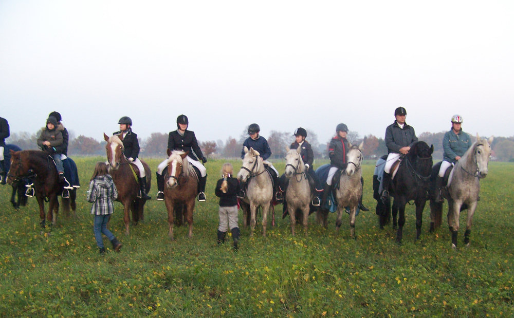 Unsere erste Fuchsschwanzjagd. Ich ritt im letzten Feld bei den Nichtspringern. Hat viel Spaß gemacht.